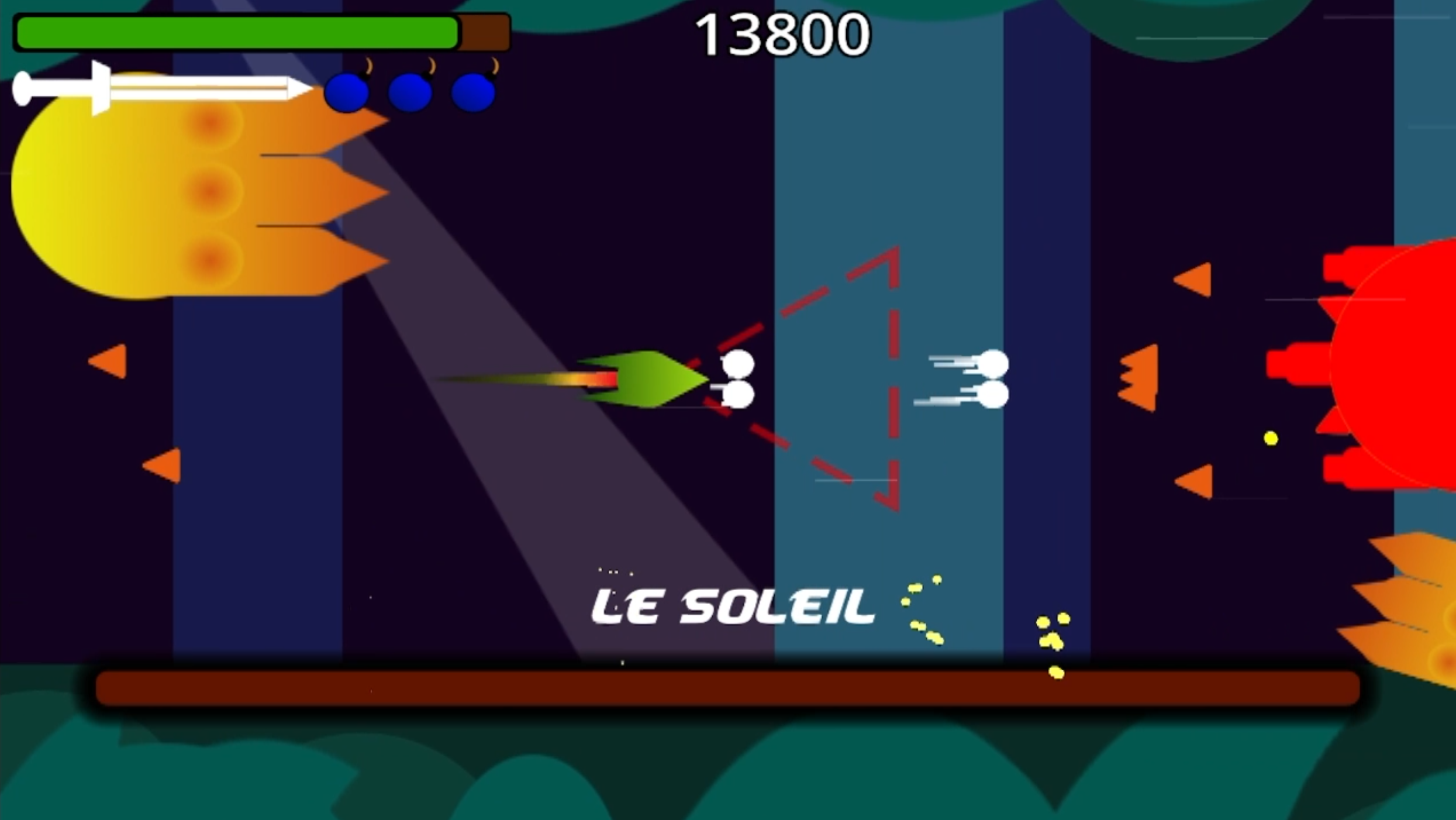 Sun Chaser is a classic challenging sidescrolling Shoot'Em Up featuring a melee attack system.